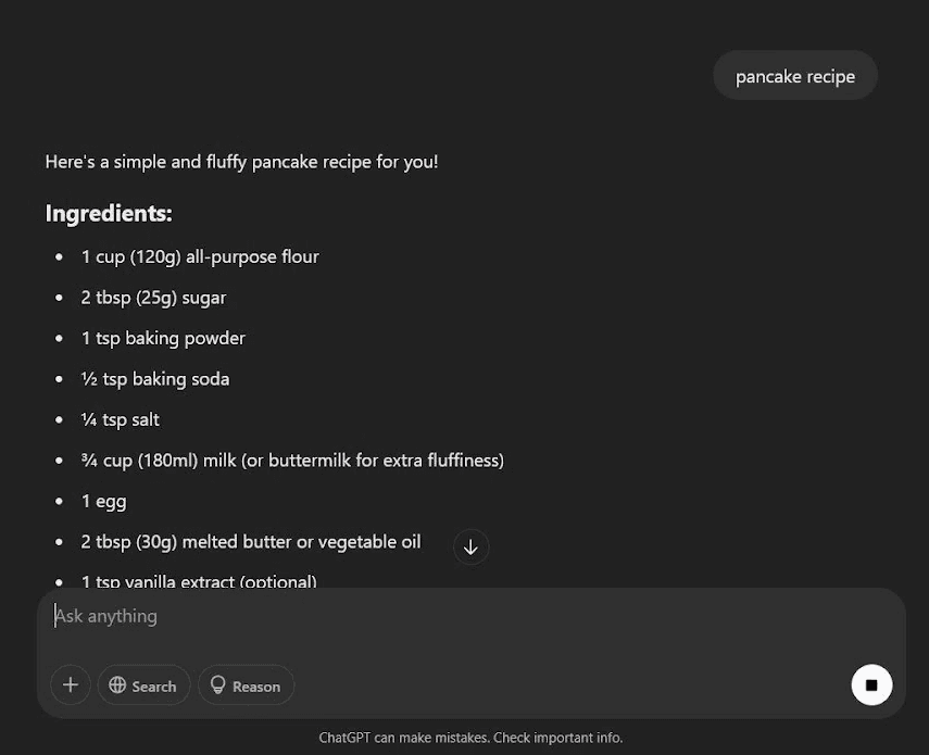 I find myself now using chatgpt more often for mundane things as I'm frustrated with googling something like a recipe and the first things that come up are two 'sponsored ad' pages a half covered google ai recipe. and then finally a food recipe website on pancakes which I usually have to scroll past a whole story or pancakes to find the recipe.