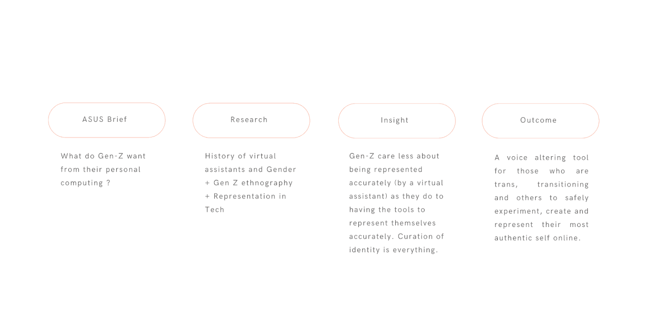 Then it lead to representation in tech - as this is important to Gen-Z. Finally I landed on the insight that "Gen-Z care far more about having the tools to accurately represent themselves, rather than being represented accurately (by vessels like AI)"